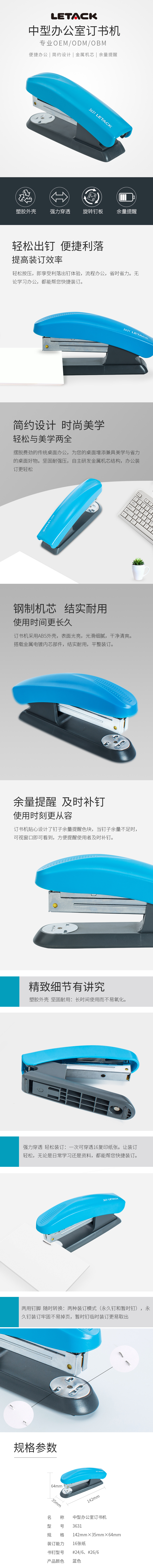 定制中行辦公室訂書(shū)機(jī) 堅(jiān)固耐強(qiáng)壓 中型訂書(shū)機(jī)3631可定制...
