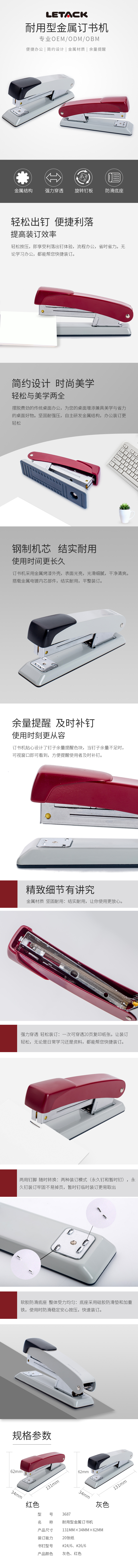 OEM訂書機加工定制 中型訂書機3687可裝訂20張紙 LOGO可定制...