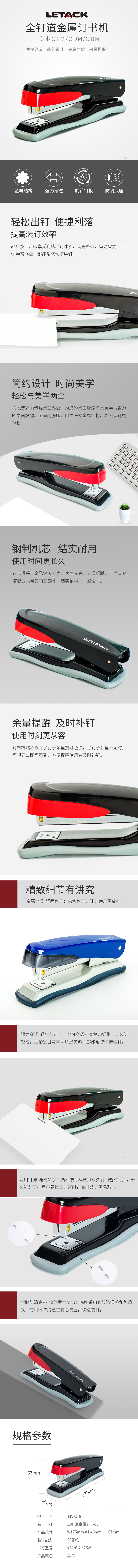 利爾達MS-278中型訂書機耐用金屬裝訂機辦公文具禮品可定制顏色...