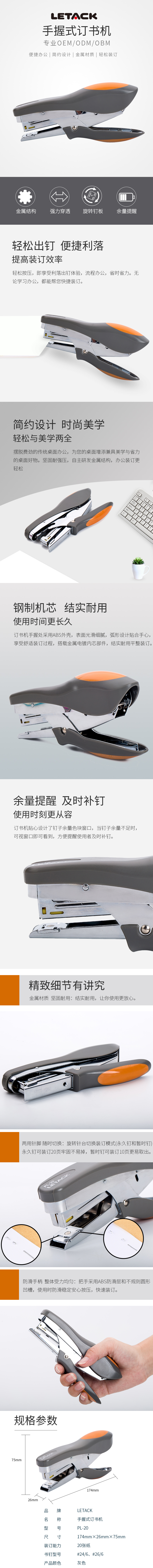 利爾達(dá)PL-20手握式訂書機(jī)24/6# 26/6#省力舒適辦公財(cái)務(wù)通用訂書機(jī)...