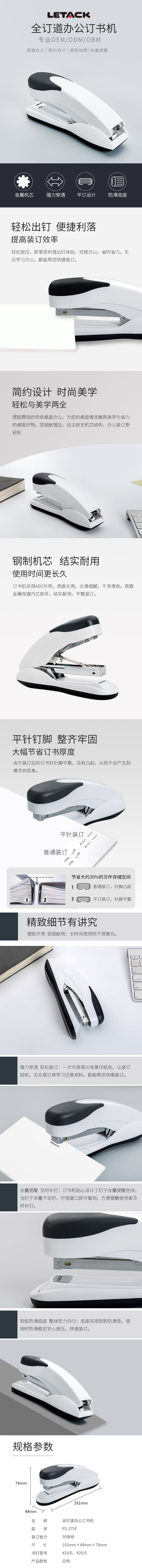 利爾達(dá)PS-275F中型訂書機(jī)全訂道辦公訂書機(jī)辦公文具用品OEM廠家...