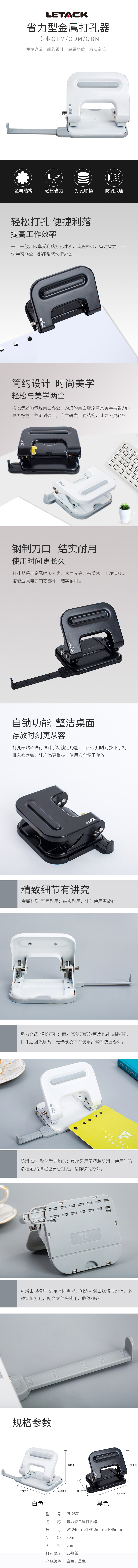 一楽堂PU2501省力型金屬打孔器手動兩孔打孔機辦公文具OEM貼牌...