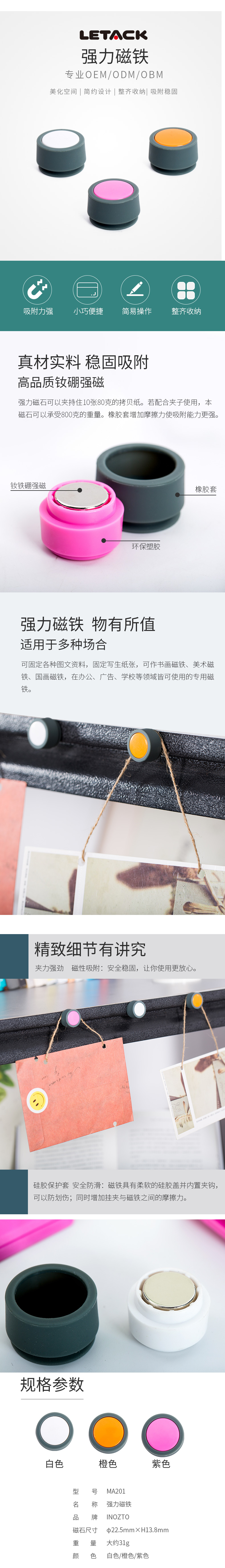 一楽堂MA201白板磁鐵黑板圓形磁吸辦公室收納磁釘簡約小巧磁扣...