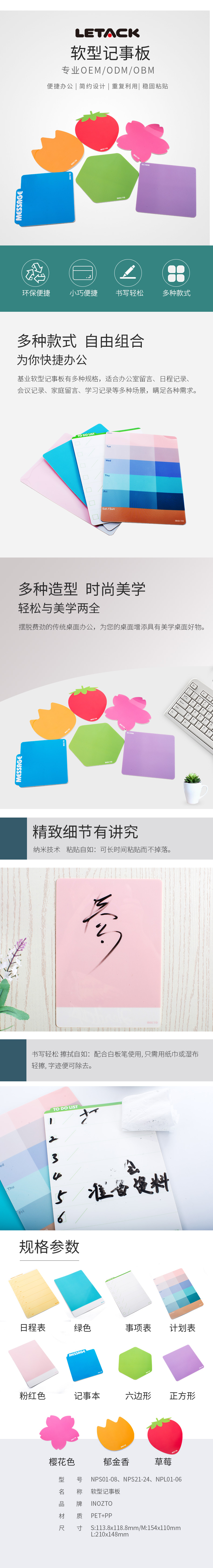 一楽堂NPL01-06納米貼快捷辦公記事板PET可擦日程記錄板OEM工廠...